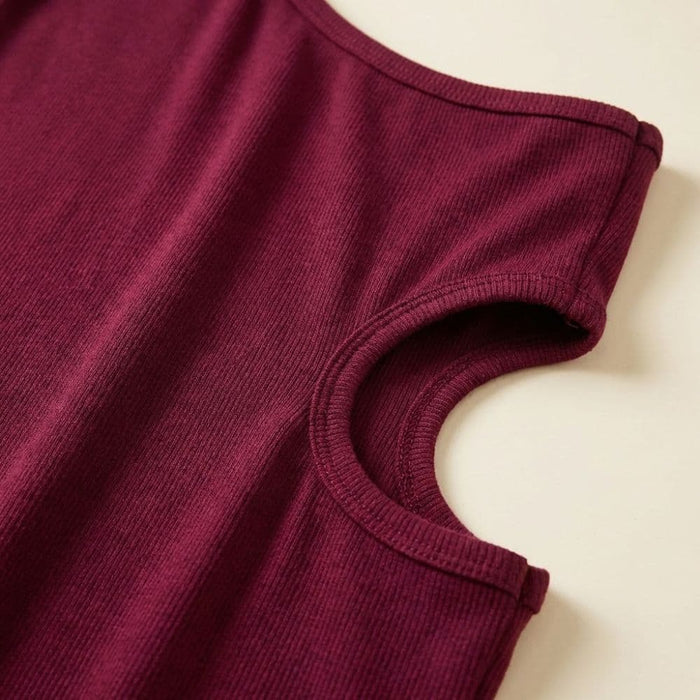 Vestido canelado midi com design ombro único e recorte lateral que valoriza a silhueta. Confortável e versátil, perfeito para ocasiões casuais ou eventos especiais. Disponível em preto e bordô.