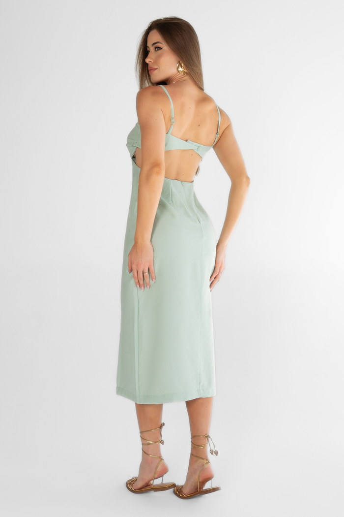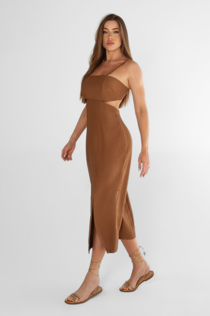 Suas linhas minimalistas, combinadas com recortes estratégicos e caimento impecável, esse sem dúvidas é o vestido indispensável do seu closet. Ideal para ocasiões que pedem sofisticação com naturalidade, ele transita entre o casual e o formal, oferecendo um charme atemporal que remete ao estilo de vida mediterrâneo.